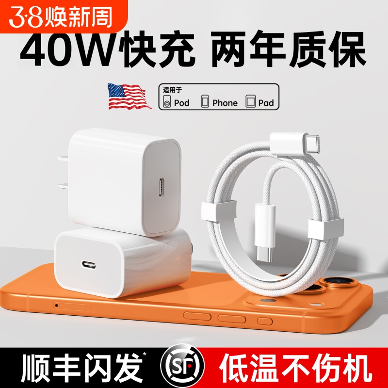 40W苹果充电器快充官方适用于iphone17promax充电器线16/15正typec品45W原ipad装2米适配器数据动态充电头