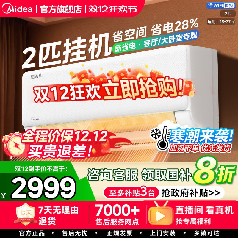 美的酷省电Pro空调家用一级卧室1.5匹2匹官方变频冷暖正品大挂机
