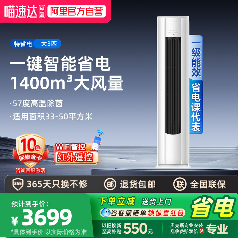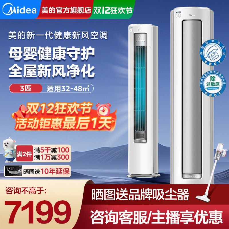 美的静新风空调立式客厅一级能效变频3匹家用柜机官方旗舰店正品