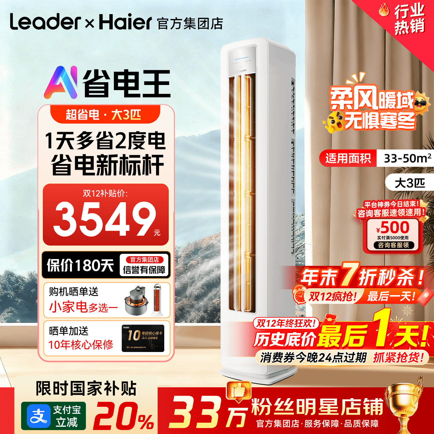 [国补20%】海尔空调3匹2匹家用一级变频冷暖两用统帅立式客厅柜机