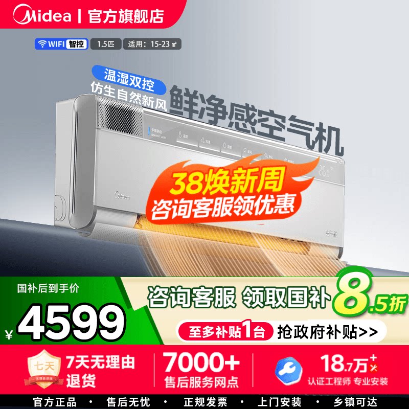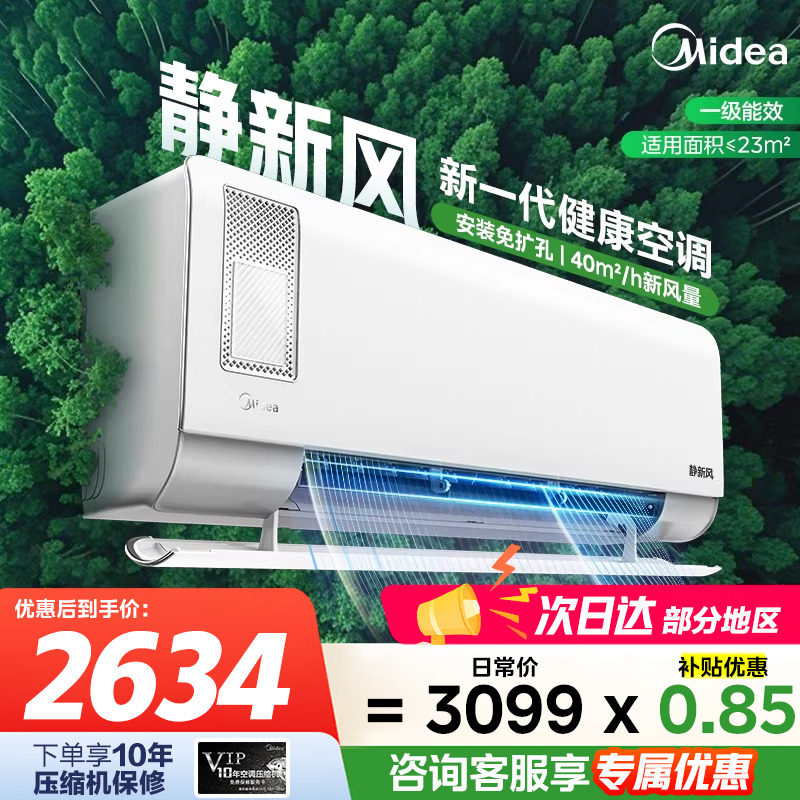 美的静新风空调1.5匹1p空气净化一级变频冷暖家用挂机官方旗舰店
