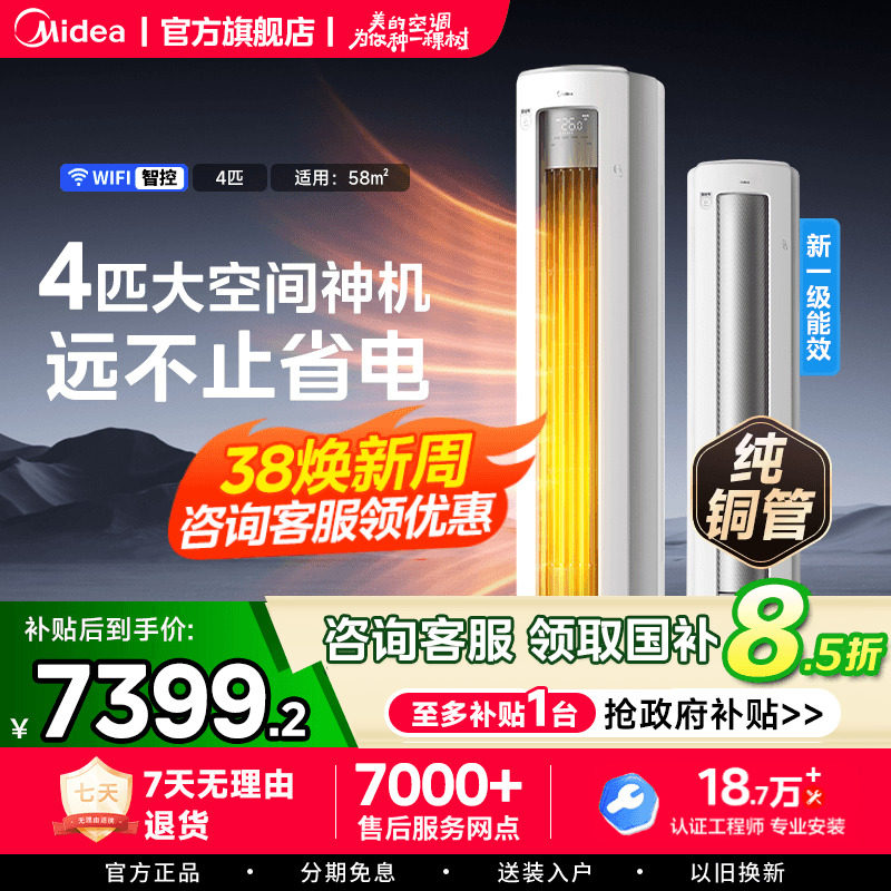 【政府补贴】美的空调一级节能大2匹3匹立式家用柜机变频冷暖空调