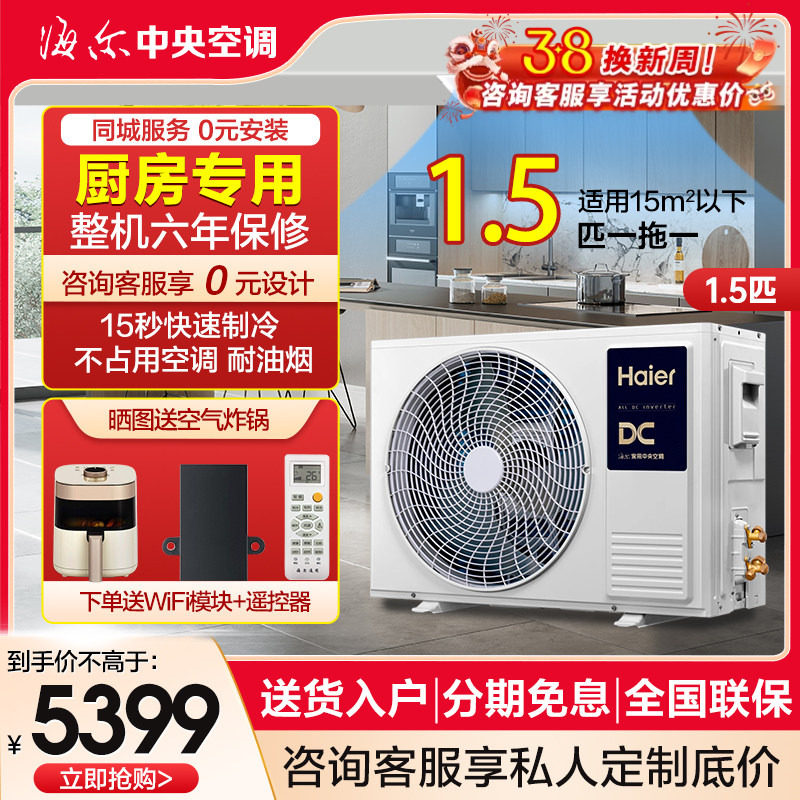 海尔1.5P匹厨房专用空调一拖一嵌入式风管机KF-35NW/77EHK21PU1