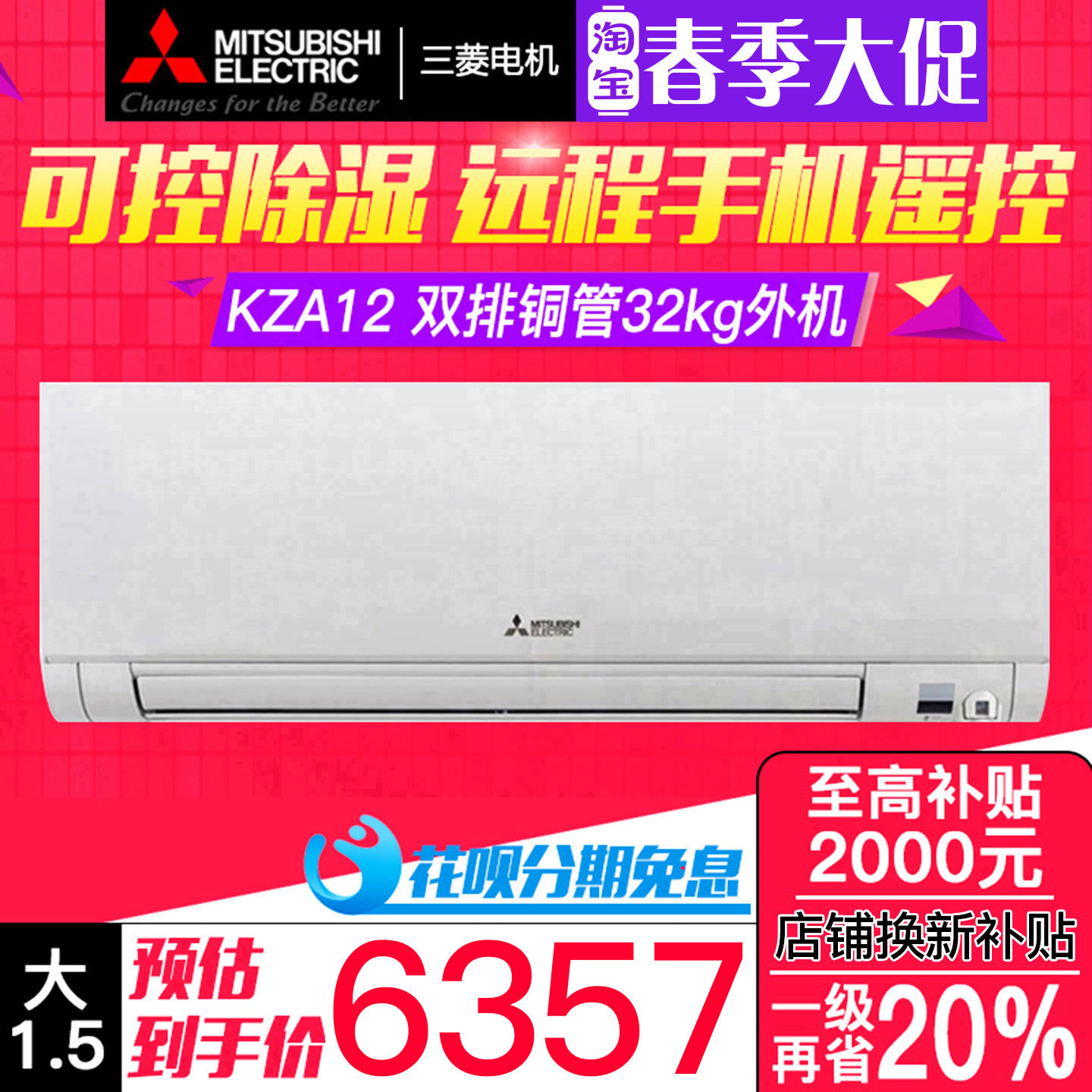 三菱电机MSZ-KZA12VFK菱之感1.5匹P变频空调挂机双排铜管1级能效