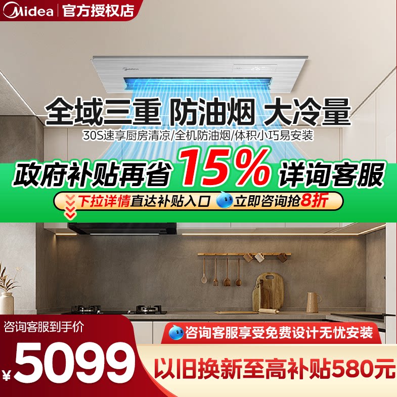 美的厨房空调专用嵌入式一级1.5匹家用集成吊顶制冷FG100厨清凉