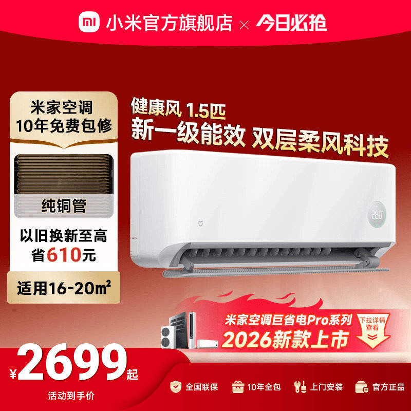 【健康风】小米米家空调1.5匹新一级能效冷暖变频挂机家用官方