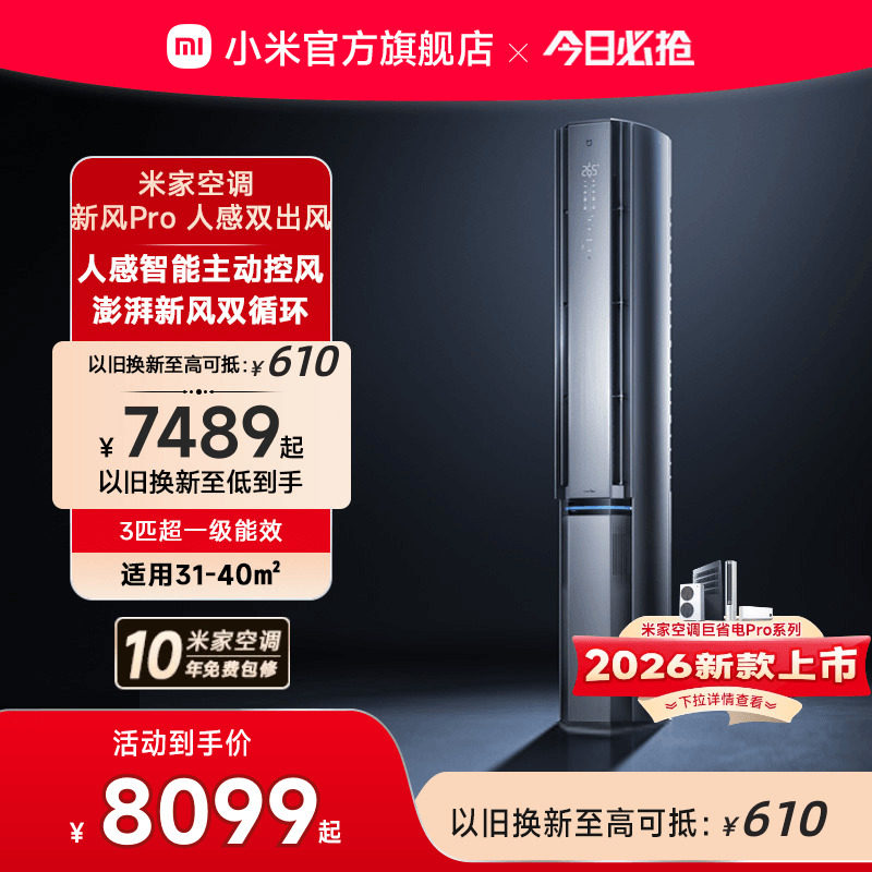 小米米家空调新风Pro人感双出风立式柜机3匹超一级能效客厅变频