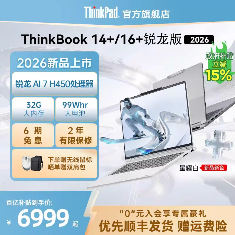 【新品+政府补贴】联想ThinkBook14+16+ 2026全能本锐龙AI 7 H 450商务办公轻薄本便携笔记本电脑官方旗舰