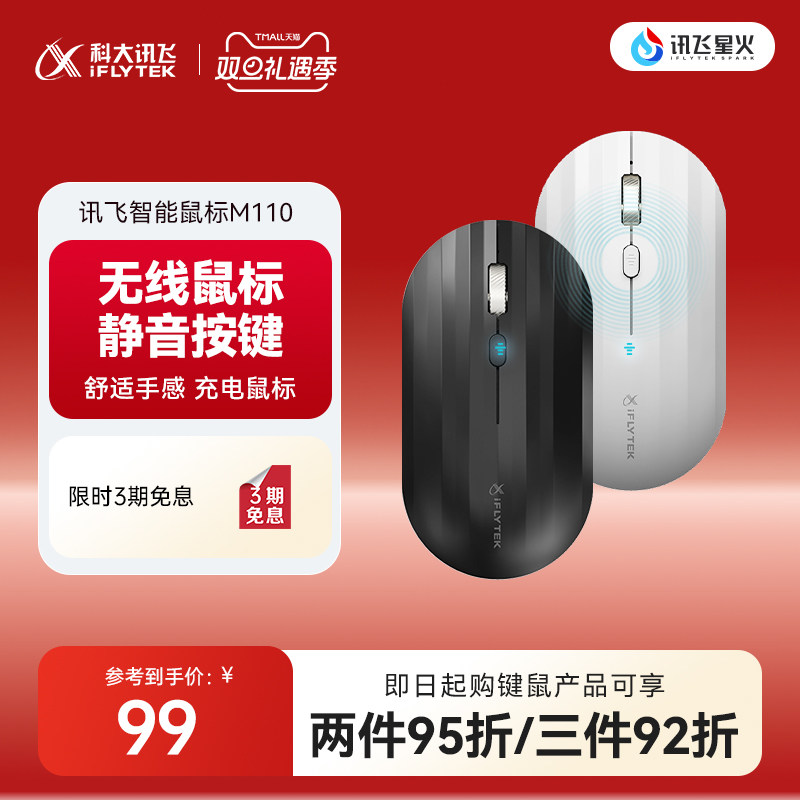 科大讯飞语音鼠标M110蓝牙静音AI鼠标人体工学