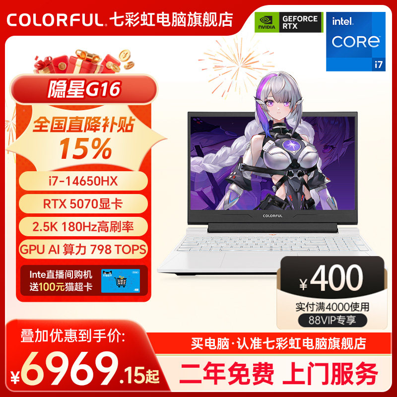 【全国可用换新补贴】七彩虹隐星G16 14代酷睿i7-14650HX RTX5070独显16英寸游戏笔记本电脑电竞本官方旗舰店
