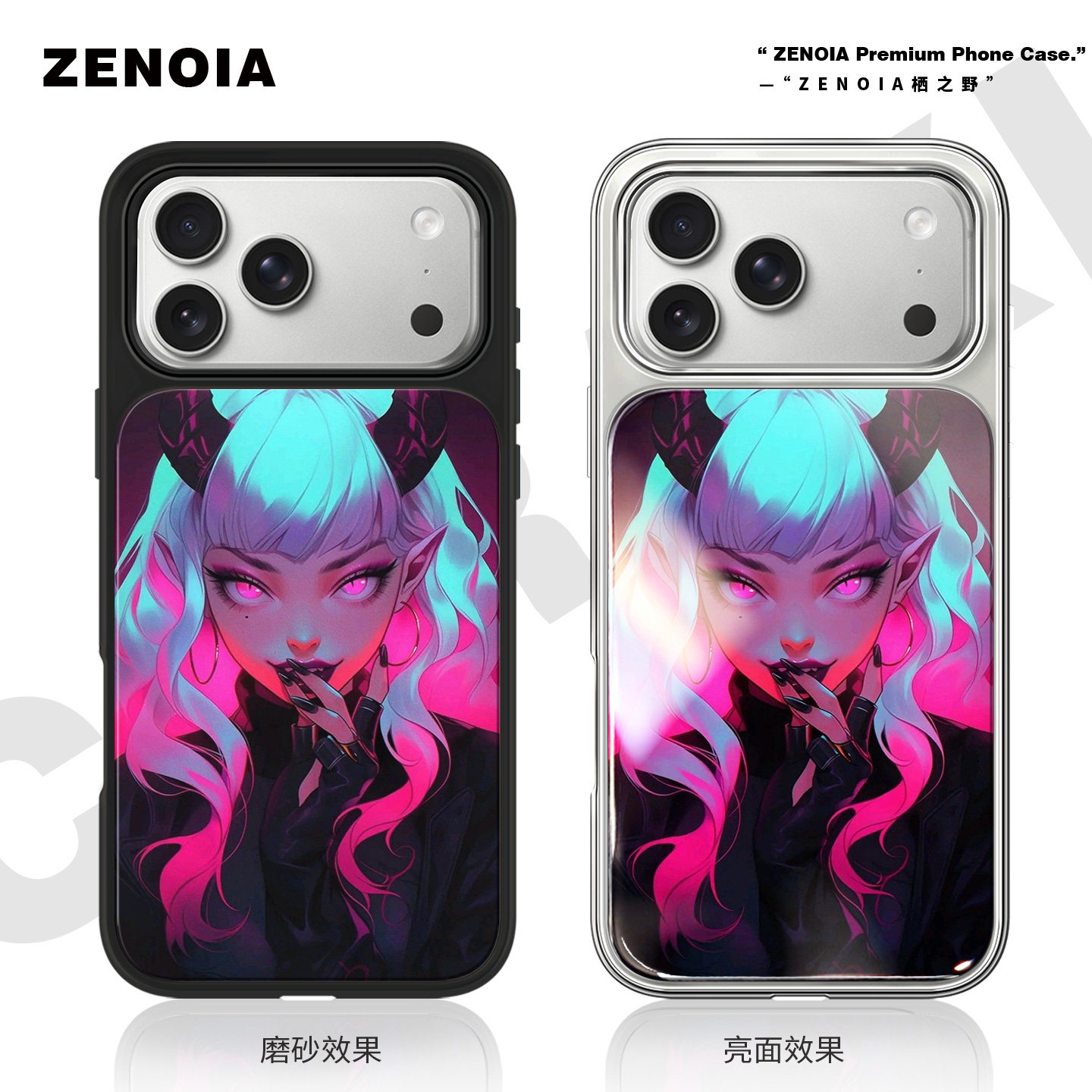 适用于荧光恶魔角女孩苹果17promax手机壳16磨砂黑边亮面软银边iphone15/14/13创意动漫air高级感小米个性女