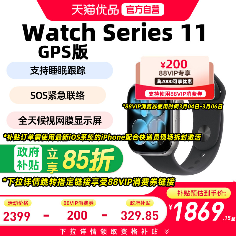 【政府补贴至高15%】Apple/苹果Apple Watch Series 11 智能手表GPS款铝金属表壳+运动型表带